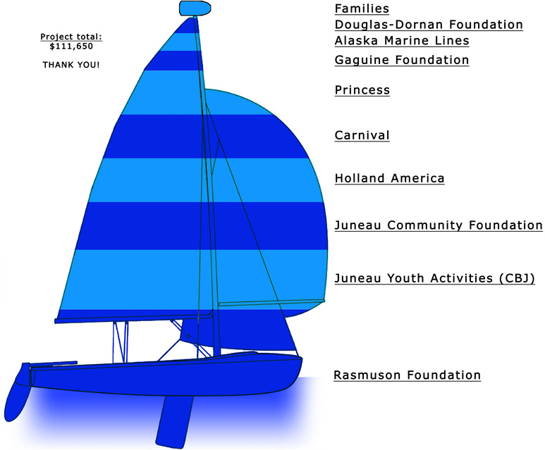 These boats were expensive, but they will benefit thousands of youths over the next 20-30 years (and the longevity of our maintenance volunteers). Class sizes can return to 16 from 12, and a wider variety of skills can be taught. Our immense thanks goes out to the funders of this effort: Rasmuson Foundation, CBJ Youth Activities Grant (''this project was partially funded by the citizens of the City and Borough of Juneau through sales tax revenues''), Juneau Community Foundation, Holland America, Carnival Cruises, Princess Cruises, Gaguine Foundation, Alaska Marine Lines, Douglas-Dornan Foundation, and the Schwarting, Watt, Ginter, & Siroky/Fredriksson families. Thank you for keeping the wind in our sails!